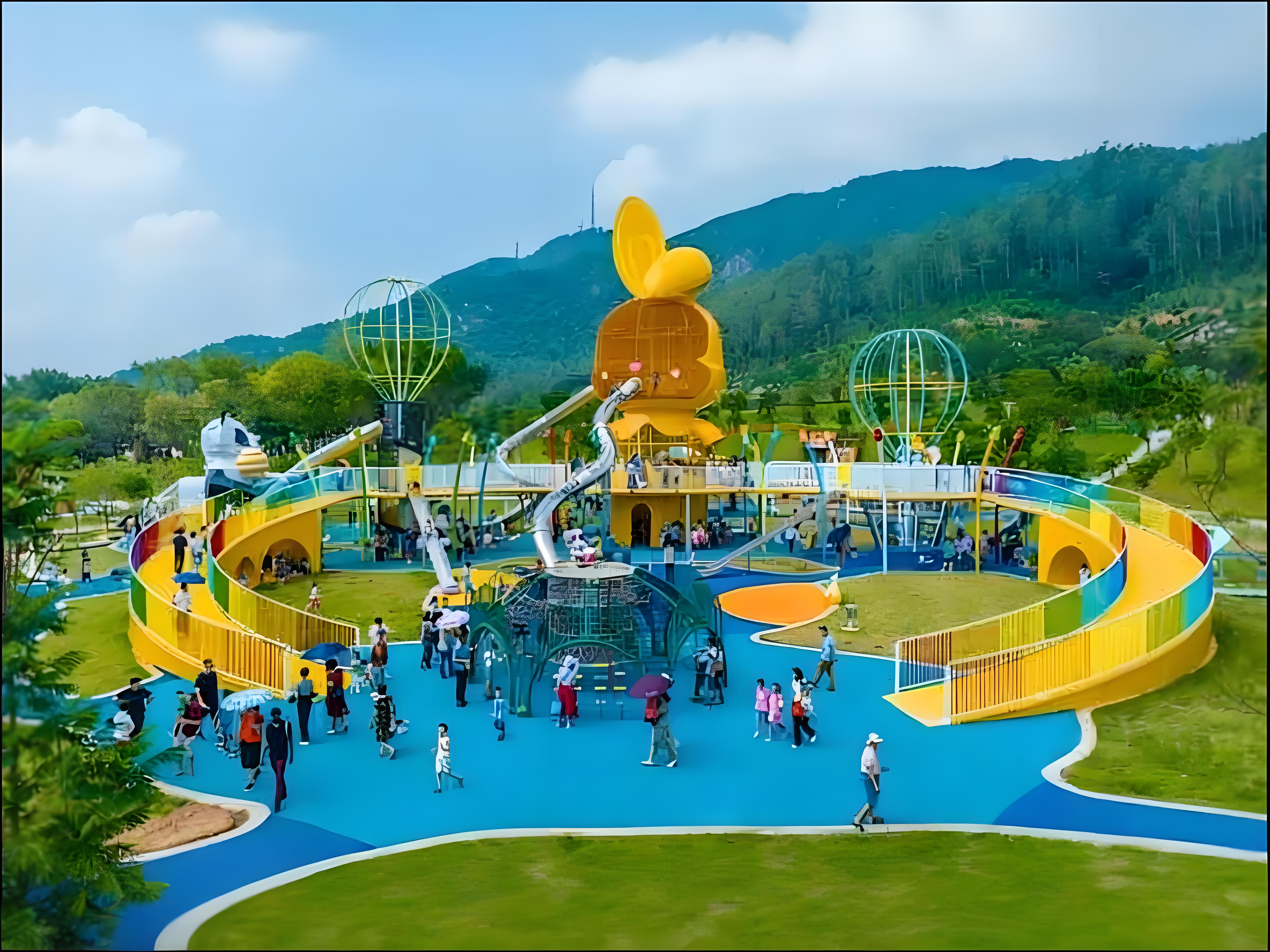 新会儿童乐园通过“自然地形+主题设计”的创新融合,实现了从低龄娱乐到青少年挑战的全覆盖,成为大湾区亲子家庭“寓教于乐”的热门目的地