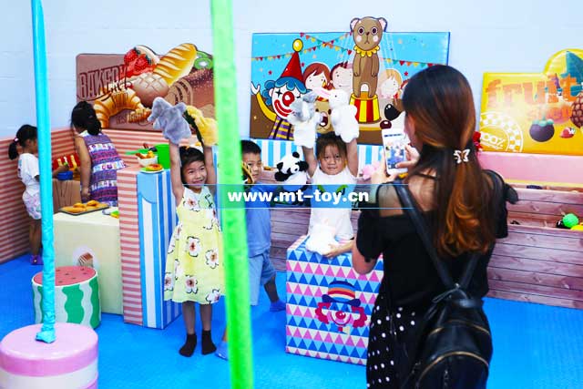 充满贵族气息的紫色大面积渲染,在紫色中融入活跃的黄色做点缀,营造了一种醒目、愉悦氛围,整个搭配现代,时尚,大气而又简洁,体现了该淘气堡的“高、大、尚”