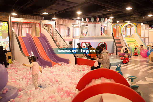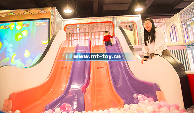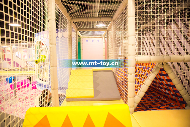 充满贵族气息的紫色大面积渲染,在紫色中融入活跃的黄色做点缀,营造了一种醒目、愉悦氛围,整个搭配现代,时尚,大气而又简洁,体现了该淘气堡的“高、大、尚”