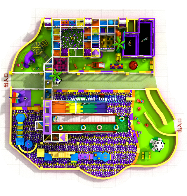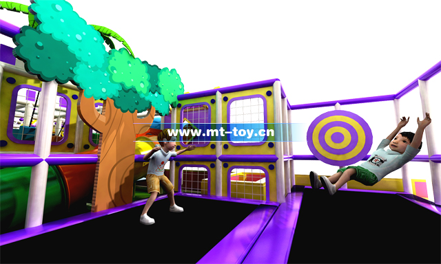 充满贵族气息的紫色大面积渲染,在紫色中融入活跃的黄色做点缀,营造了一种醒目、愉悦氛围,整个搭配现代,时尚,大气而又简洁,体现了该淘气堡的“高、大、尚”