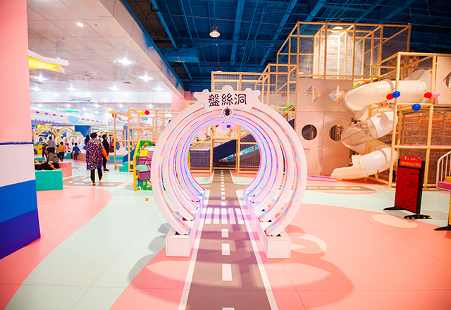 主要项目有蹦床、海洋球池、沙池、滑梯、彩虹梯、攀岩、椰树、旋转木马、海盗船设备等。如何让儿童淘气堡的铺装更有趣?