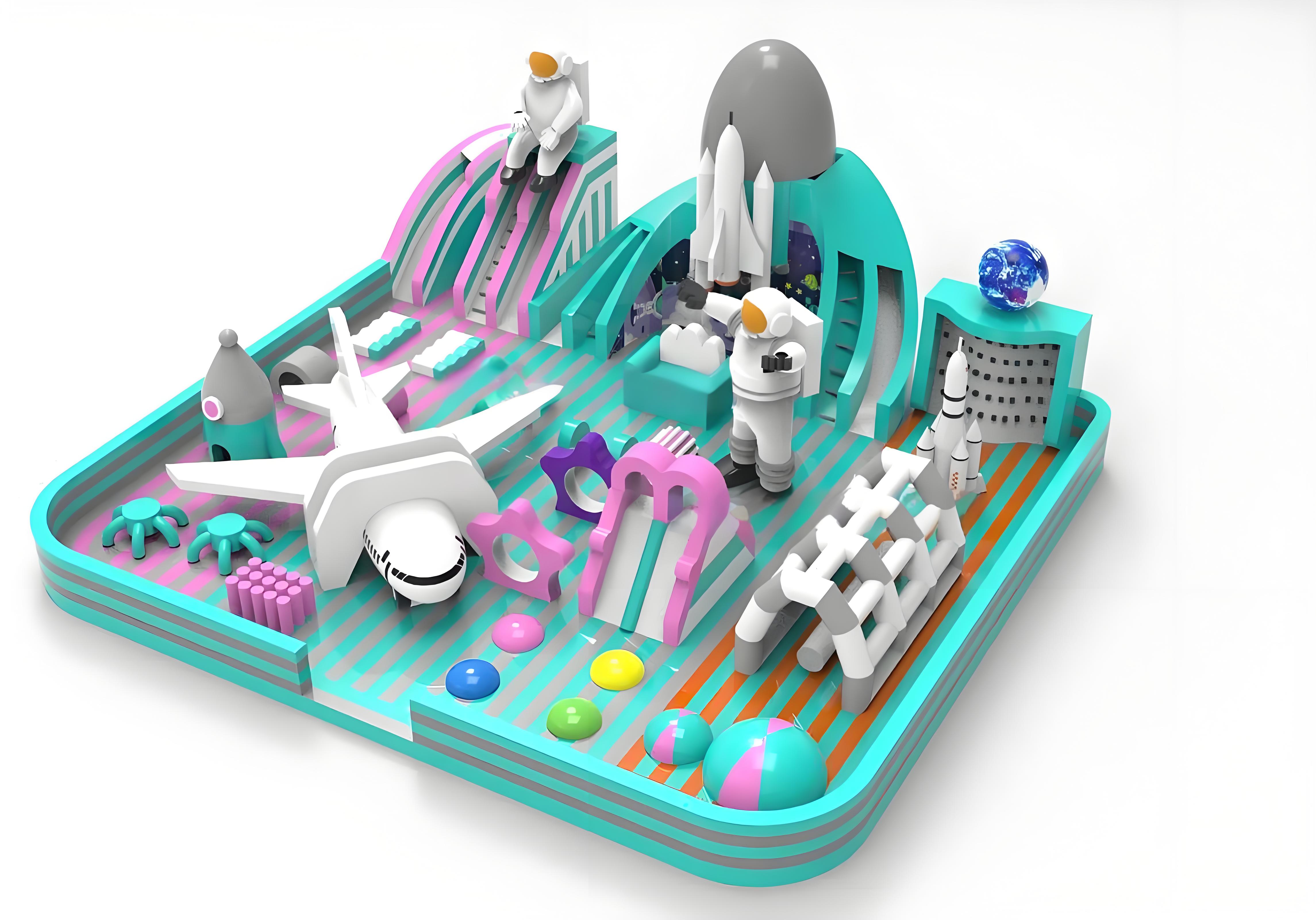 可快速拆装的卡通造型充气堡,占地15-20㎡,支持钻爬滑跳多元玩法,抖音打卡视频播放量破亿案例已验证传播力