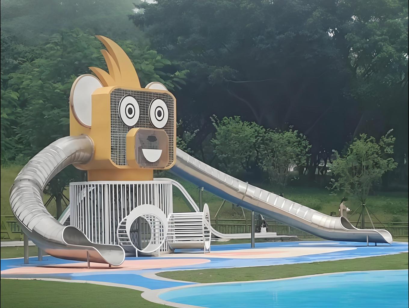 大型组合滑梯:多层立体滑梯群组,结合攀爬网、绳桥等元素,满足3-12岁儿童体能挑战需求。