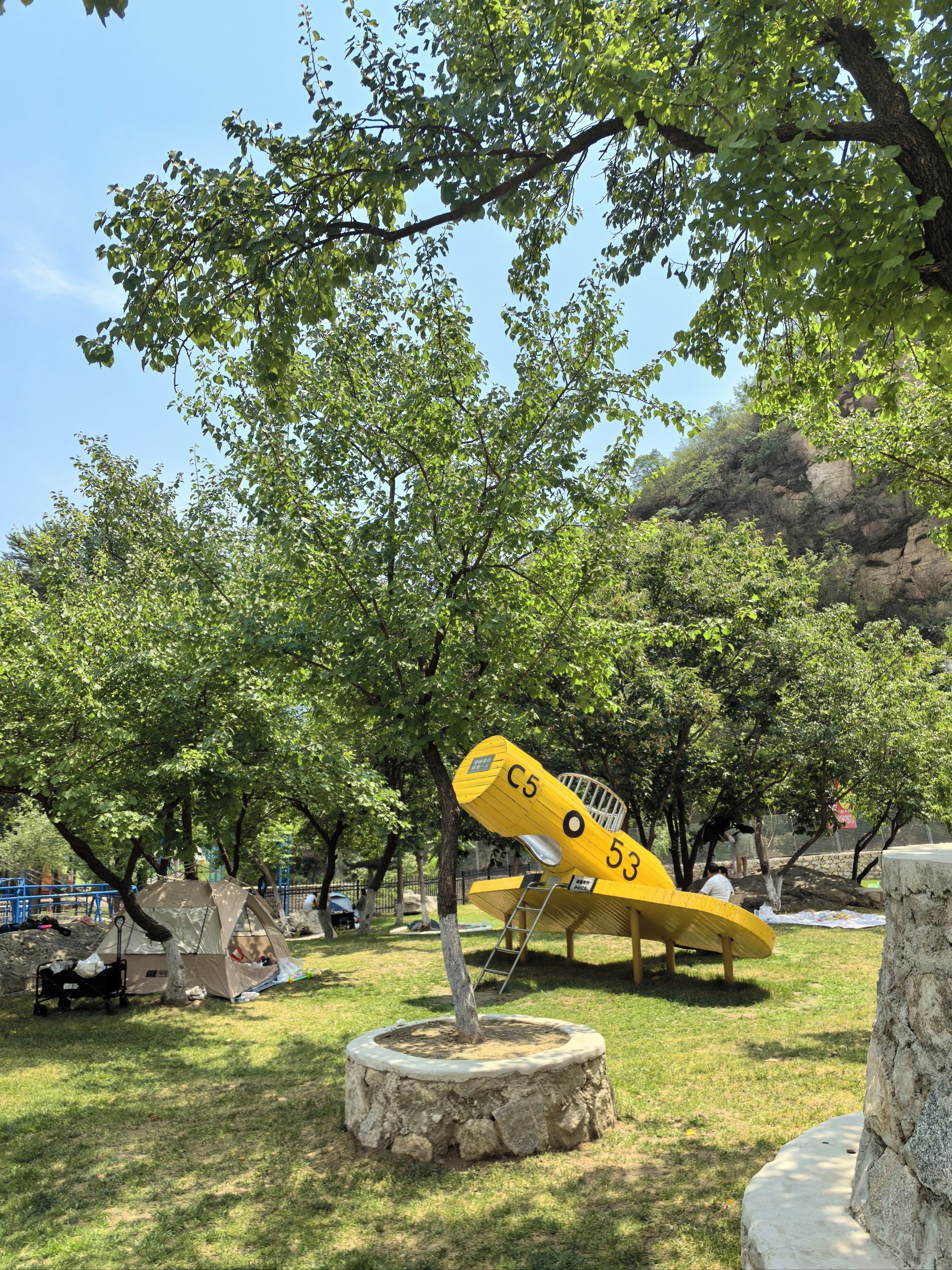 草坪露营区:支持搭建帐篷(小帐篷30元/顶)或铺设野餐垫,树荫覆盖率达60%;